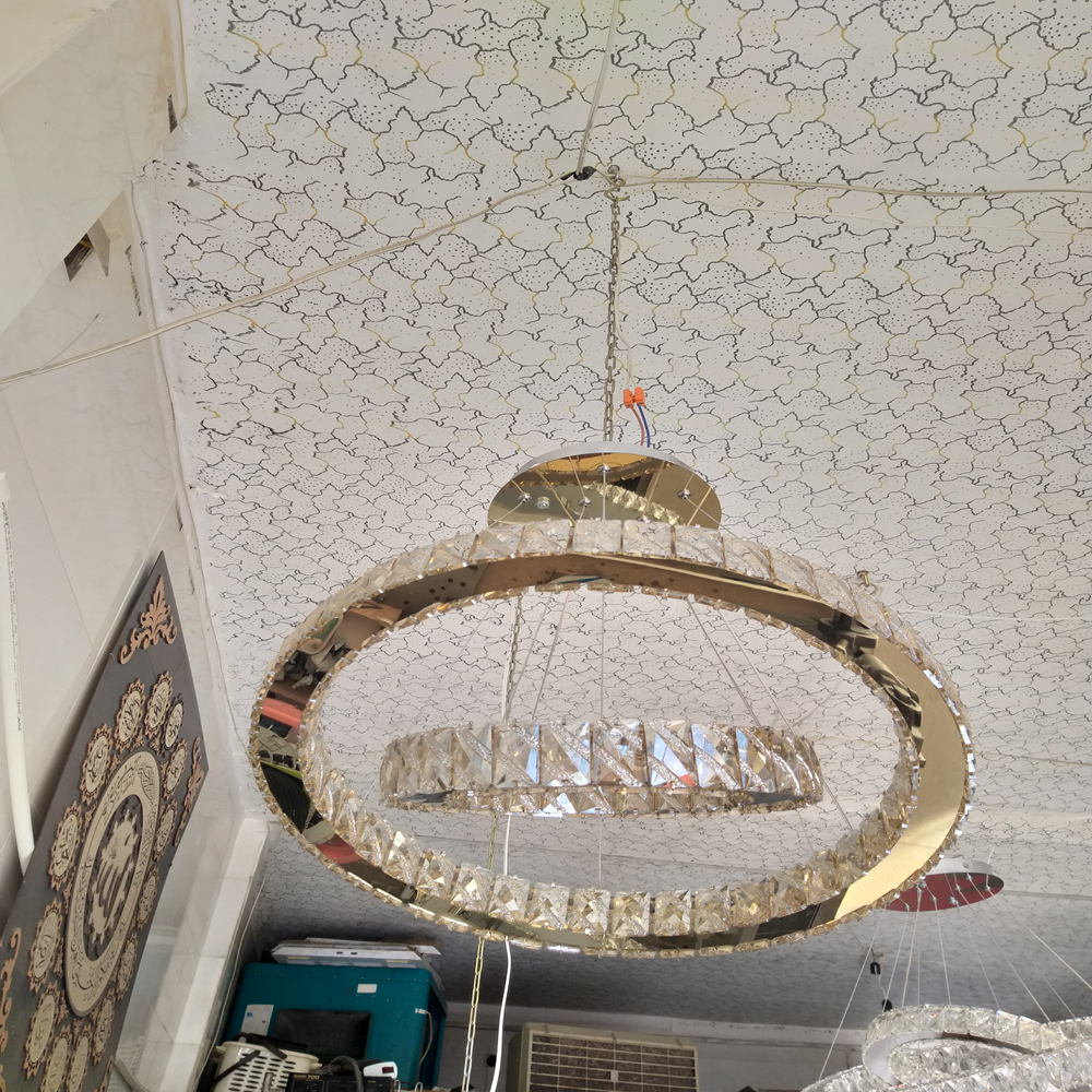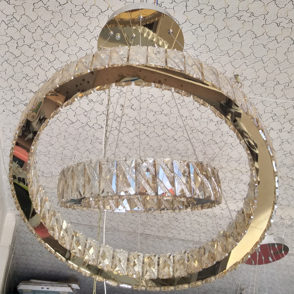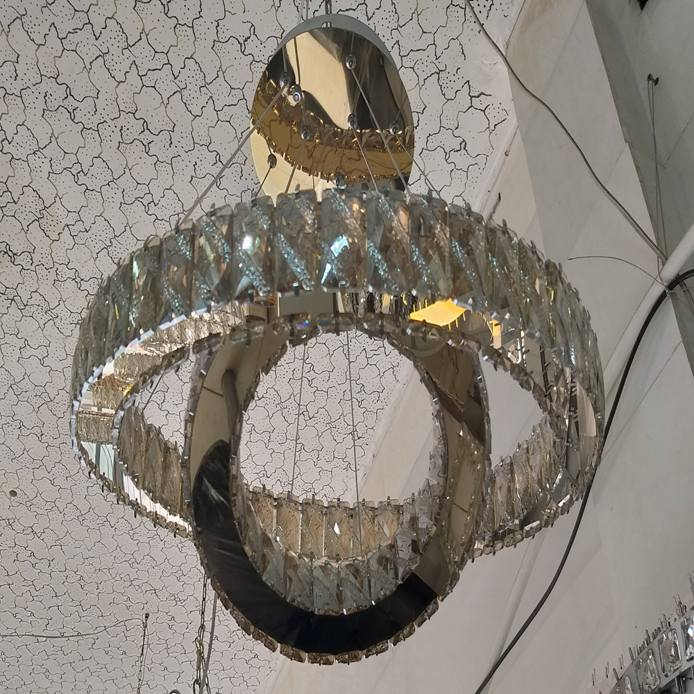 آویز دو طبقه حلقوی کریستالی (سایز ۵۰ و ۳۰ سانتیمتر) یک گزینه مقرونبهصرفه و در عین حال شیک برای نورپردازی مدرن در فضاهایی مانند پذیرایی، نشیمن، اتاقخواب و محیطهای اداری است. طراحی دو حلقهی پلکانی، ظاهر مینیمال و مرتب ایجاد میکند و کریستال دوطرفه با افزایش انعکاس نور، جلوهای درخشانتر به فضا میدهد.