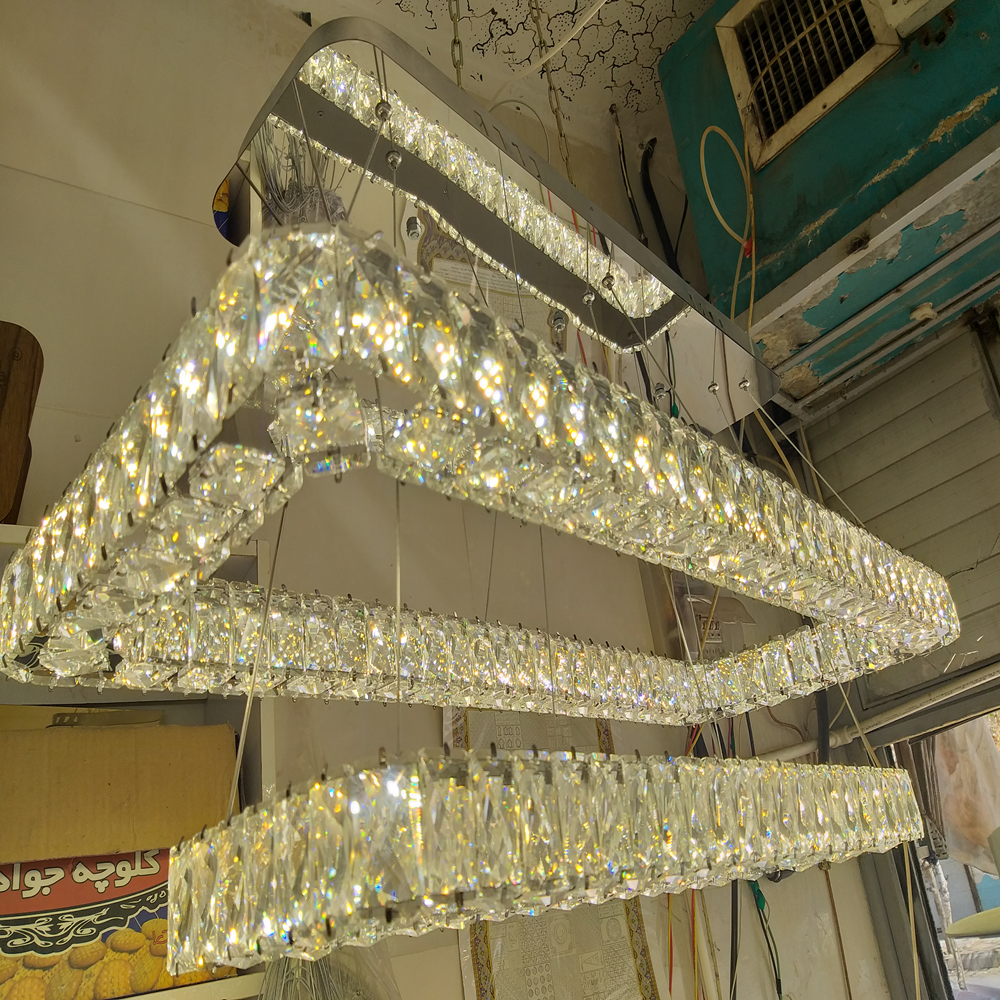 لاینر دو طبقه سایز ۸۰ یک انتخاب مدرن و بسیار چشمنواز برای فضاهایی مانند بالای میز ناهارخوری، جزیره آشپزخانه، پذیرایی و محیطهای رسمی است. طراحی لاینر دوطبقه در کنار کریستال سهطرفه، باعث افزایش انعکاس و شکست نور شده و جلوهای لوکس و روشنایی یکنواختتری در محیط ایجاد میکند.